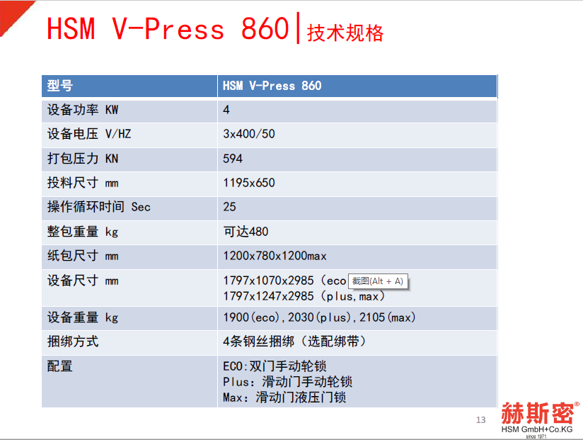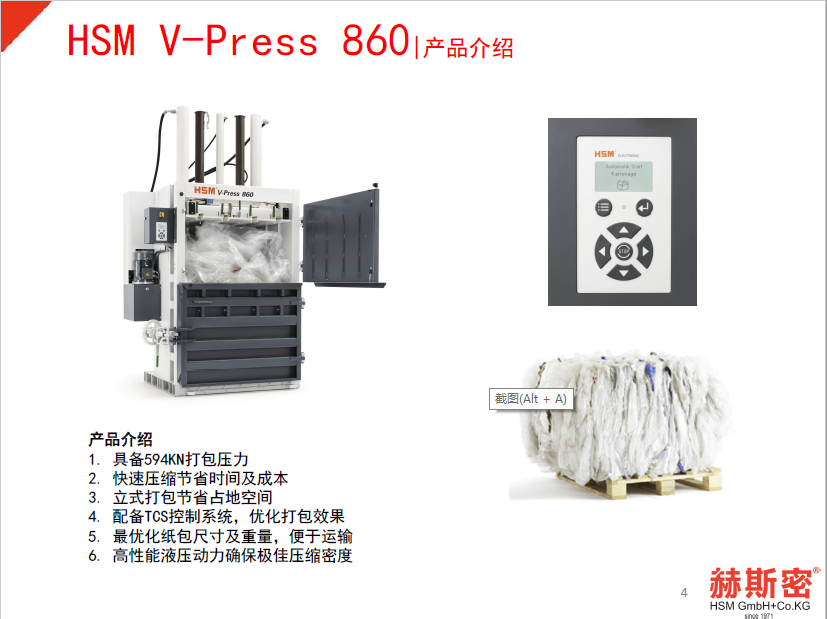 德国赫斯密HSM860 立式压缩打包机